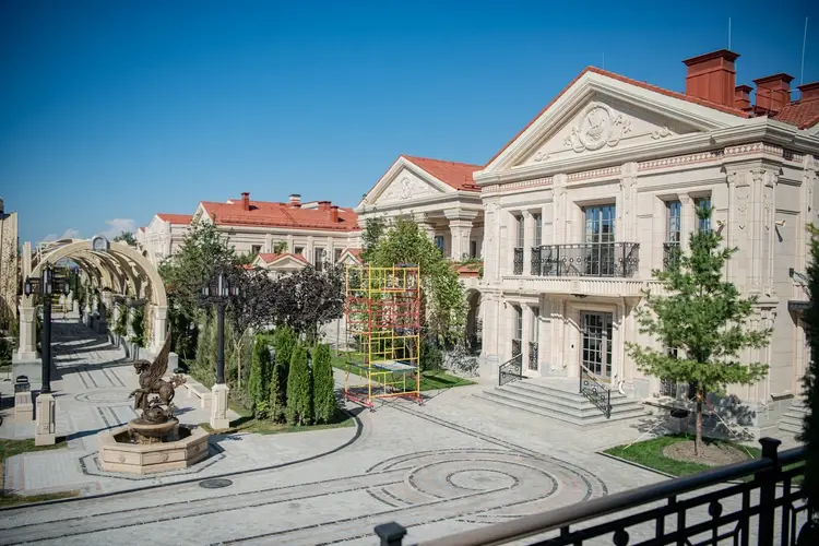 Фасады зданий, богато украшенные барельефами, выполнены из архитектурного бетона. Панели фасадов закреплены на каркасе из нержавеющей стали. Каркасы самих зданий монолитные. Все конструкции предварительно проверили на прочность.